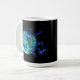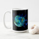 Uma imagem fractal composta por descargas elétricas azuis, semelhantes a raios, numa esfera. Personalize adicionando seu próprio texto no lado oposto.