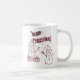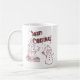 A cute, playful doodle like illustration of a snowman in front of a Christmas Tree, surrounded by ornaments and gifts.