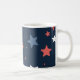 Start your day with a splash of color and fun! This bold and playful star pattern mug features a modern mix of red, white, and blue stars scattered across a deep navy background.