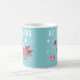 O astronauta pombo está flutuando no espaço acima da Terra e das estrelas. O texto no topo diz Sem Limites. Caneca inspiradora e fofa.