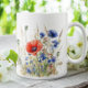 Caneca De Café Poppies & Cornflower: Aquarela Rústica