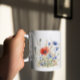 Aproveite sua bebida quente favorita cercada pelas cores vibrantes de Poppies & Cornflower: Arte Rustic Meadow Watercolor com esta charmosa caneca. Seu design rusticado faz café da manhã ou chá da tarde se sentir como um momento em um jardim florescente.