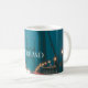 Esta caneca apresenta uma fotografia noturna modesta de Rua.Ponte de John e o nome da cidade em uma fonte branca elegante.