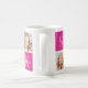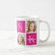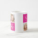 Uma caneca de presente de aniversário de 2 fotos quadradas, rosa quente, chic, para uma garotinha ou um adolescente. Comemore o aniversário do seu filho com fotos bonitinhas delas neste design de fotos com quadrados rosa bonito. Adicione seu nome e idade.