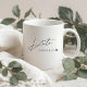 Caneca de presente de noiva personalizada com design moderno em preto e branco e nome em caligrafia personalizada.