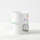 Mug para a melhor mãe. Cartoon engraçado de uma ovelha no topo de uma colina. A ovelha diz "A Melhor Mãe Baaa Nenhum". Design repete-se em ambos os lados