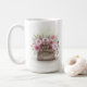 Design delicado: arranjo floral em aquarela de flores rosa e roxas em uma borda profunda, com as palavras "melhor bisavó de sempre" em letras douradas. Uma caneca de café atemporal para avó que funciona durante todo o ano, não apenas no Dia das Mães.
