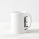 Esta moderna letra floral E preto e branco pode ser totalmente personalizada com o seu nome em ambos os lados da caneca.