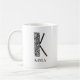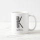 Esta letra floral moderna, preto e branco, K pode ser totalmente personalizada com o seu nome em ambos os lados da caneca.