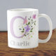 Design apresenta Monograma & Nome com Flores em ambos os lados no estilo pastel de cor de água. A primeira é a letra C. Charlie, caneca. Um presente para o Charlie.
