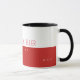 Uma caneca de café branca e vermelha moderna, personalizada com nome e profissão (arquiteto)