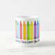 Uma bela Semana de Apreciação de Professores ou presente de fim de ano para uma aula de jardim de infância dar a seu professor primário. Personalizado feito com sua própria mensagem. Personalize com seu nome ou texto sob o arco-íris fofo de lápis. Uma caneca adorável para um professor de pré-escola.