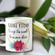 Todo professor que teve "um daqueles dias" vai adorar esta caneca! Possui flores brilhantes e coloridas e uma imagem brilhante de falso ouro, com o ditado "Goal Today, Keep the small human alive." Personalize-o com o nome do professor em frente da alça. A imagem é impressa em ambos os lados. Faz um presente de apreciação de professor excelente! Design ©Rosalind Moore para Designs de Cherry Lane.
