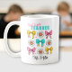 Caneca colorida e fofa com lápis de arco e margaridas felizes no estilo retrô coquetel, não apenas para professores de primeiro ano. Personalize facilmente o texto ou deixe alguma vazio - Kate Eden Art
