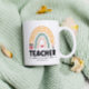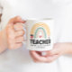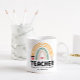 Professora Ensinadora Amor Inspire Arco-Íris Nome Personalizado Coffee Mug apresenta um lápis como parte de um arco-íris com um coração de amor com o texto "Professor Ensinador de Amor" na tipografia moderna com seu nome personalizado. Perfeito para seu professor favorito para apreciação de professores, aniversário, Natal, feriados e muito mais. Projetado pelo Evco Studio www.zazzle.com/store/evcostudio
