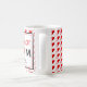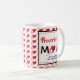 Na moda, caneca de café moderna para o Dia de as mães ou aniversário da mãe em tema vermelho, branco e preto. Design de corações vermelhos, com tipografia vermelha. O texto diz Proverbs 31 e a mensagem diz: "Os filhos dela a chamam de abençoada". O reverso é design de corações vermelhos em padrão ondulado. É um belo presente para o Domingo da Mãe, para os aniversários, para o Natal ou para qualquer época do ano. Parte da Coleção de DIAS DE AS MÃES em Designs Bereanos.