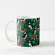 Padrão Puffin colorido e divertido com muitas flores e folhagem verdes. Cor verde e laranja vibrantes.
