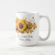 O latte de especiaria de abóbora de bebendo vai ter um gosto muito melhor de uma caneca de outono personalizada. Este antigo desenho de Ação de Graças de abóbora apresenta abóboras laranja bonitinhas, folhas de outono e girassóis bonitos no outono. Caneca de Ação de Graças Feliz e Nostálgica, com a escrita marrom do seu nome