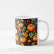 Grandes e pequenas abóboras, folhas verdes e douradas, e uvas roxas exuberantes se combinam para fazer um belo tema de Ação de Graças nesta caneca. Linda imagem de colheita para sua casa!