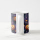 Design de festas de crianças bonitas do Halloween, festa perfeita de Halloween, laranja e roxo, com ilustrações bonitinhas com abóboras e chapéus mágicos. Ilustração Adorável de Halloween.