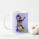 O crânio roxo de punk bonito com mohawk, guitarra e estrelas é um design de crânio colorido para o roqueiro.