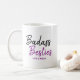 O presente perfeito para o seu BFF, a caneca de Besties de Badass. Um dos lados diz "Besties de Badass" em letra de letra de letra e tem seus nomes, enquanto o outro diz "Quando estamos juntos, somos mais legais que todos os outros".