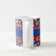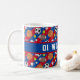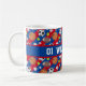 Esta caneca esportiva de café com um padrão esportivo multi-bola pode ser qualquer cor que você quiser ou você pode manter a coroa vermelha/azul. Na área de personalização, você pode mudar as listras e/ou a cor de fundo para suas cores favoritas ou para as cores de sua equipe esportiva favorita. Pode ser uma ou duas cores. Você também pode fazer o padrão da bola esportiva e o padrão estelar nesta caneca maior ou menor na área de inclinação. Personalize esta caneca de café com um primeiro ou sobrenome e um número de jogador. Este é um presente personalizado divertido para dar fãs esportivos.