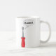 Um gráfico engraçado de uma chave de parafuso com uma alça vermelha e o texto "Eh, parafuse-a" em uma bolha de fala em uma caneca