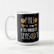 A pequena abóbora marrom, cogumelo, e as ilustrações das botas-de-chuva e o grande texto: Queda é a minha estação favorita.