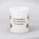 Galo Quirky com uma caneca de café. "Manhãs sem café não são nada para se culpar." O texto pode ser alterado. Imagem assistida por IA adquirida com uso comercial. Trabalho de arte: Anguscolor