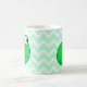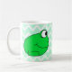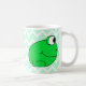 Uns desenhos animados bonitos do sapo verde. Este sapo de vista engraçado está em uma luz - fundo verde do teste padrão de ziguezague.