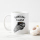 RADIOLOGY breakfast design featuring a skeletal hand holding a coffee mug. An inside joke from imaging culture. A fun, thoughtful mug for radiology staff, radiographers, radiologists, and anyone who works in a radiology department including front desk and clerical teams.