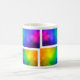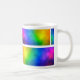 Rainbow Spectrum 11 oz ceramic coffee mug with vibrant rainbow gradient bands and white borders. Colorful modern drinkware, dishwasher and microwave safe, perfect gift for coffee lovers.