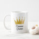 A caneca de café branco da rainha do drama com coroa, dobra imprimir tomado partido