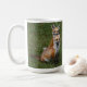 Um par de raposa vermelha se junta em um campo na borda da floresta.