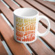 Realtor Real Estate Favoritos Groovy Retro Boho Coffee Mug. Uma caneca elegante e engraçada com as coisas favoritas de um corretor imobiliário. Faz o presente perfeito para o profissional que ama vender casas. Cores quentes em uma fonte retrorreflectora que diz Abrir casas, Ofertas de Caixa, Acima de pedir preço, Sob contrato e Fechamento Rápido.