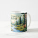 Ponha sua bebida favorita enquanto se reconecta com a beleza da natureza. Esta design de caneca serena apresenta uma paisagem pacífica de floresta com pinheiros altos, um rio fluido, colinas suaves e vida selvagem suave como cervos e borboletas. Com a frase "Reconectar com a Natureza" contra um nascer do sol brilhante, é um lembrete perfeito para retardar e apreciar o mundo natural. Ideal para amantes da natureza, caminhantes e almas ecologicamente conscientes.