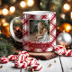 Esta caneca vermelha moderna apresenta um padrão de xadrez de verificação de cor d'água vermelha e búfalo branco com texto e 2 fotos para personalização. Encontre itens correspondentes nos Cartões de natal de Xadrez de Buffalo de Coloração de Água de Natal.