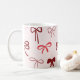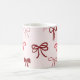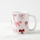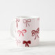 Sip your coffee in style with this elegant mug featuring red bows on a soft pink background — perfect for cozy mornings or holiday vibes.