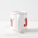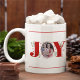 Alegria Vermelha com bagas, caneca de café com foto de Natal. Mostra a palavra "JOY" com bagas vermelhas e verde enquanto em vez da letra "O" está a sua foto.