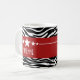 Trendy e moderna Sassy Star Zebra Mug apresentando um fundo de impressão em branco e preto chico e uma borda vermelha ousada adornada com um divertido motivo de estrela. Este design feminino pode ser personalizado com o texto personalizado de sua escolha. Clique em "Personalizar" para encontrar mais opções de personalização.