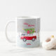 Red Truck Feliz Cinza de Natal Coffee Mug. Personalize adicionando o nome do receptor e mudando a frase do Feliz Natal. Itens Correspondentes Disponíveis.
