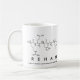 Rehan soletrado em aminoácidos como R E H A N (ácido glutâmico arginino Histidina Alanina Asparagina) numa caneca para o cientista em si.