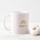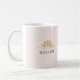 Uma linda caneca de café cor-de-rosa que diz "Reiki On" na frente e "Raise Your Vibration" na parte de trás. Esta é a caneca perfeita para qualquer pessoa unida ao Nível Um de Reiki e além.