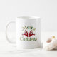 Vermelho, verde e ouro, caneca de renas de Natal feliz.