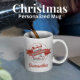 Esta design apresenta uma linda caneca de Natal, com um feriado moderno, uma simples tendência, com tipografia, design de natais vintages, canecas de férias personalizadas, com cervo de rena, Papai Noel, o tema do polo norte, em vermelho e branco simples.
