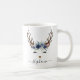 Esta caneca festiva apresenta renas bonitas com buquê floral azul. Adicione seu nome para personalizar. Faz um presente excelente!