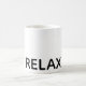 relaxe as letras maiúsculas pretas impressão, caneca personalizada