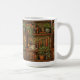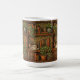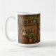 A cozy retro-inspired design featuring a charming bookshelf filled with vintage books, delicate botanical accents, and a comforting cup of tea or coffee.