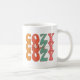 Esta caneca de café festiva apresenta a imagem de texto "Cozy Cozy Cozy Cozy Vibes" em cores e fontes retrorreflectoras.